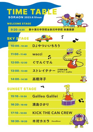 満島ひかり / KICK THE CAN CREW / 木村カエラ / wacci / ストレイテナー(結成25周年企画)/ majiko / Galileo Galilei / 高橋洋子 / DJやついいちろう / ぐでんぐでん(稲泉りん/高橋あずみ/植松陽介SPコラボユニット) / 新十津川中学校&砂川中学校 吹奏楽部