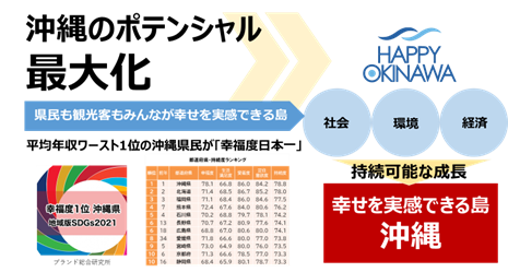 沖縄県は、2022年5月15日に本土復帰50周年を迎えます。この歴史的節目の年を記念し、“沖縄を世界に誇る幸せな島へ”をテーマに『HAPPY OKINAWA PROJECT』を開始します。沖縄の持つポテンシャルを最大化し、沖縄経済の回復・発展、持続可能な成長を目指します。