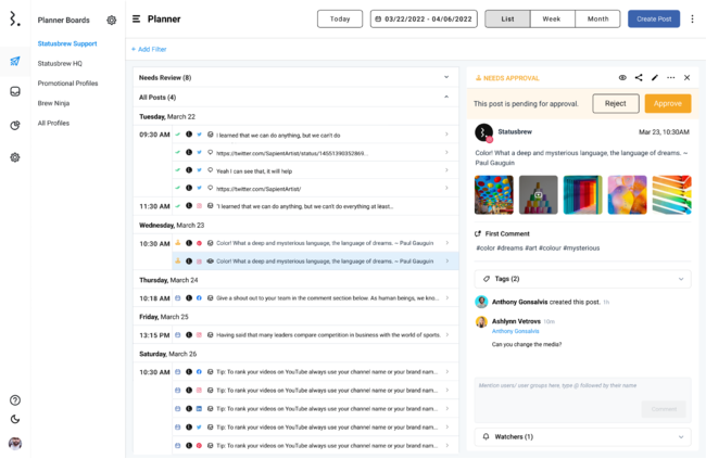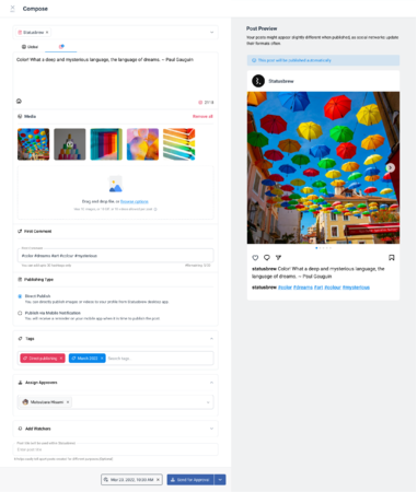 Statusbrewの投稿エディター「コンポーズ」で承認プロセスも同時機能