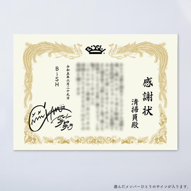 1.清掃員たちへの感謝状(選んだメンバーの直筆サイン入り)