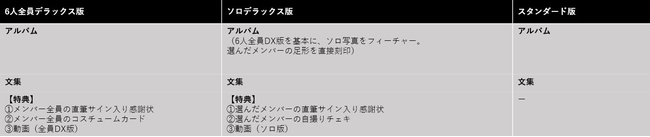 「6人全員デラックス版」「ソロデラックス版」「スタンダード版」の3パターン、それぞれの仕様を用意いたしました。
