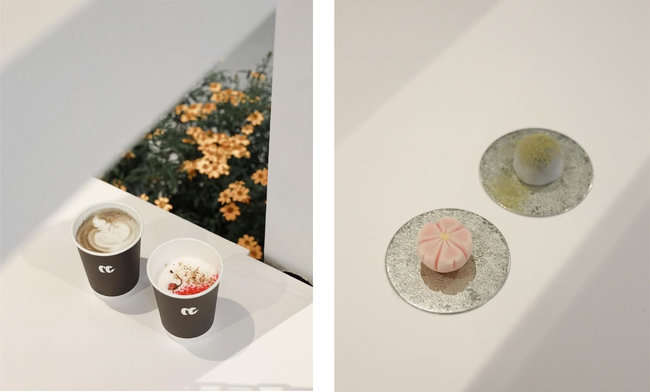 ドリンクメニューは本店でも人気の「炭ラテ」や季節限定の「桜ラテ」、台北店限定のジャスミンティーラテなど。和菓子は今回「食用花」という施設内のテーマのもとコラボレーション商品として、スパイスを使用した「紅豆大福」や「銅鑼焼」を台北店限定で提供いたします。日本文化と融合した独自の商品をここでしかあ味わえない特別な空間でお楽しみください。