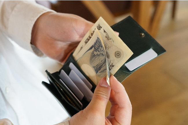 利き手を選ばず出し入れしやすく、入れたまま数えることができる!折り目がつかないお札入れ
