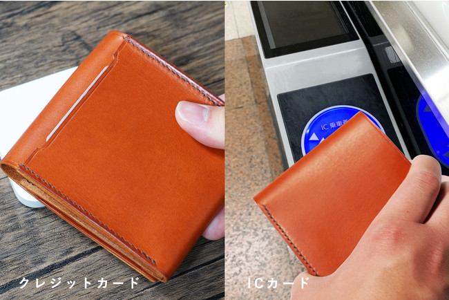 いちいちカードを出すことなく、瞬時に違う2つのカード決済が可能![フロントスライドポケット+クイックICポケット]