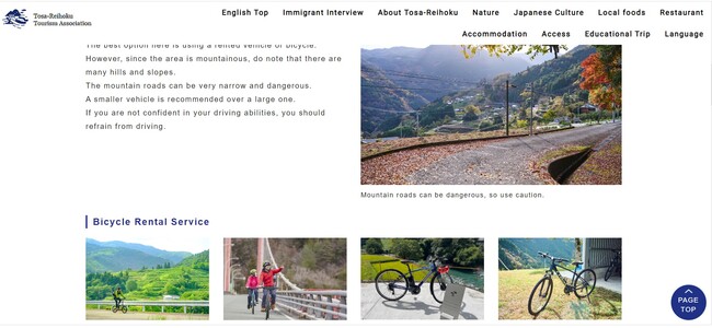 何十軒もあるレストランを比較したい時に、いちいち詳細に飛んでたら大変。スマホではページが長くてもいいからスクロールするように情報を掲載すれば比較検討は楽になります。それとアクセスページ。やたら細かい行き方を掲載していますが、もう誰も見ていませんよ。みんな、Google mapで検索で出てきますので。それよりも観光地での移動手段など、実用的な情報をほしがっています。今回、土佐れいほくエリアの場合は、車がないとほとんど動けないので、レンタカーをお薦めしますなど記しました。また山道は細くて急なので気を付けてくださいなども」と浦澤氏。