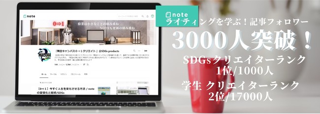 2021年9月 SNS『NOTE』SDGsクリエイターランキング1位/1000人中獲得