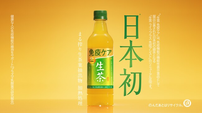 *「生茶 免疫ケア」は、免疫機能の機能性表示食品として届出公表された日本初の緑茶となる「生茶 ライフプラス 免疫アシスト」のリニューアル品です。