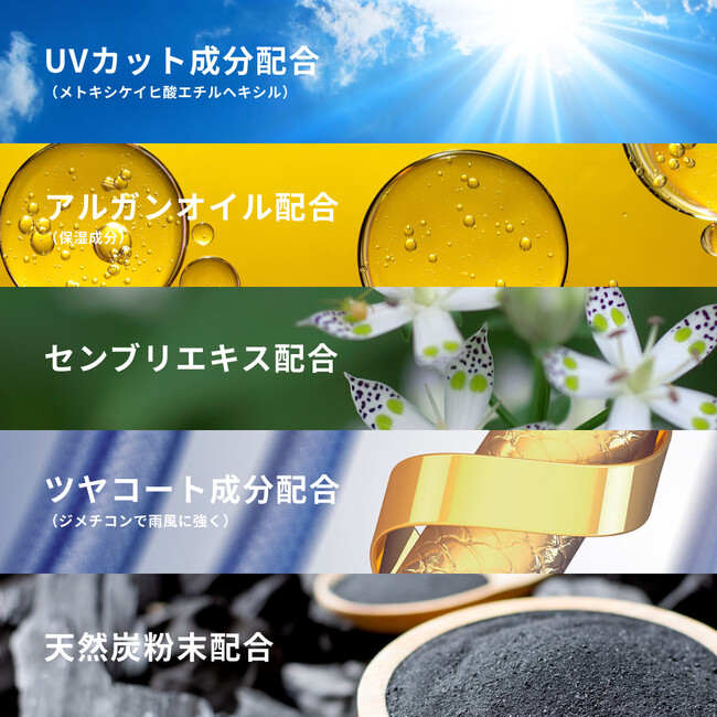 ・雨や汗に落ちにくく、風にも強いコート&ツヤ成分(ジメチコン)