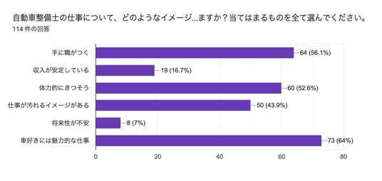 自動車整備士に関するイメージを114名の方を対象にアンケート