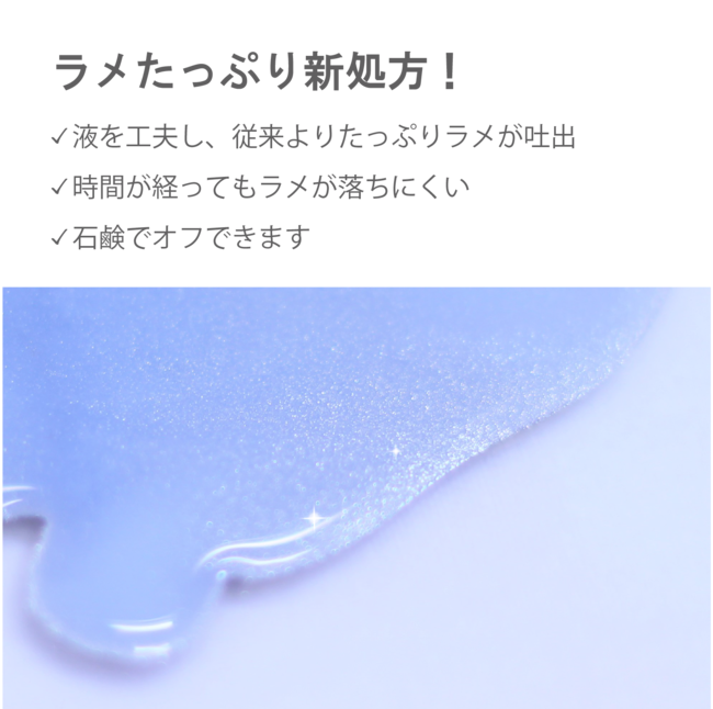 従来のラメライナーよりもたっぷりラメが吐出する設計で、誰でも簡単に輝く目元を演出!落ちにくいロングラスティングでありながら、石鹸オフ処方なのも魅力的です。