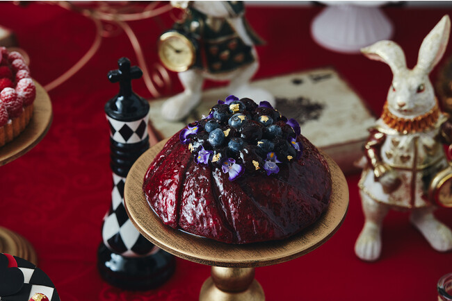 ほろ苦いキャラメルと栗のムースを繊細なチョコレートで覆った『ぐるぐる迷子でお茶会に遅れる黒うさぎ』、マカロンとラズベリーを冠した『狂った時間の恋するタルト』、カシスやラズベリー、チェリーのシロップを染み込ませたパン生地でカスタードクリームとベリーコンポートを包んだ『マーチヘアーのブレッド&ベリープディング』など、秋のフルーツをふんだんに用いた新作スイーツが勢揃いします。