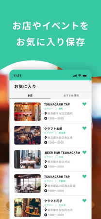アプリ内で気になる店や情報を見つけたら「お気に入り登録」が可能。登録したものはいつでも確認ができるので、あとで見返したいときや、また訪問したいビアバーを見つけたときのメモにも使えます。