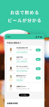 アプリでは、現在地から近くのビアバーを探せたり、クラフトビール提供店の今日の品揃えが分かったり、ビアバーの最新情報を知ることができます。現在は東京都内、大阪の一部エリアに限定されておりますが、今後はエリアを全国的に拡大させ、掲載数を増やしていく予定です。