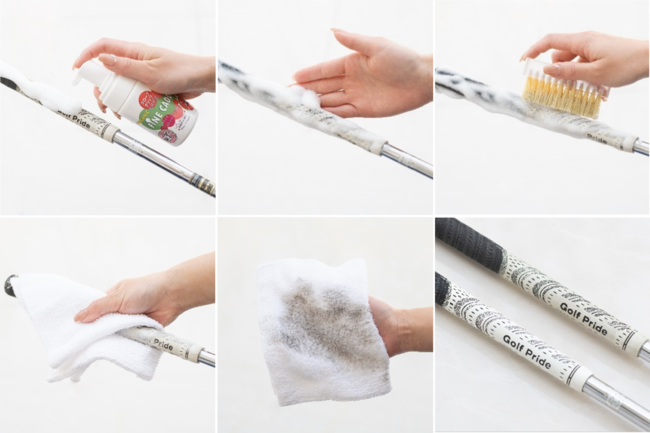 ゴルフグリップの汚れ落とし・除菌洗浄方法