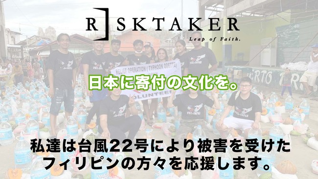 社会的ベンチャーキャピタルとしてプレシード、シード期のスタートアップに投資及びハンズオンでの経営支援を行っている株式会社RiskTaker(代表取締役:冨山 智広、以下「当社」)は、2021年12月に発生した台風22号による甚大な被害を受けたフィリピンを、応援・支援する現地企業cyca marine trading社に30万円の寄付及びお米の寄付を実施いたしました。