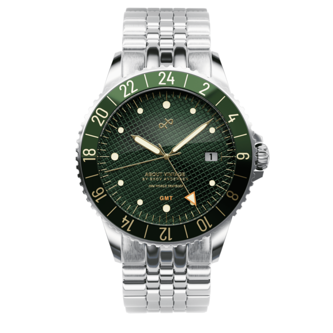 About Vintageのベストセラーウォッチ1815 Chronograph&価格以上の高級感で人気の1954 GMTウォッチにウミガメからインスパイアを受けた落ち着きと高級感を兼ね備えたグリーンタートル柄が3月27日(日)19時より新発売!