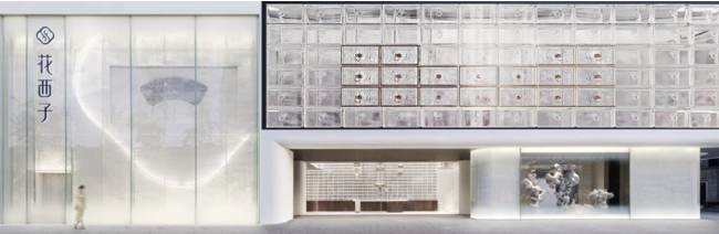 「隠れた七つの庭」とはそれぞれ造園の、百花、夢幻、詩景、風雅、工芸、礼式を意味し、 「隠れた十三の景色」は、店内13箇所に隠されているスポットを指しています。花影壁(外立面)、候月窗(窓際)、観山境(窓)、百花庁(前ホール)、拾花台(化粧品エリア)、曲径(階段)、吉光澗(芸術エリア)、弄影屏(ARスポット)、琢英坊(化粧品オーダーメイドゾーン)、不辞台(化粧品オーダーメイドゾーン)、香遠境(香水オーダーメイドゾーン)、西子雅集(会員サロン)。