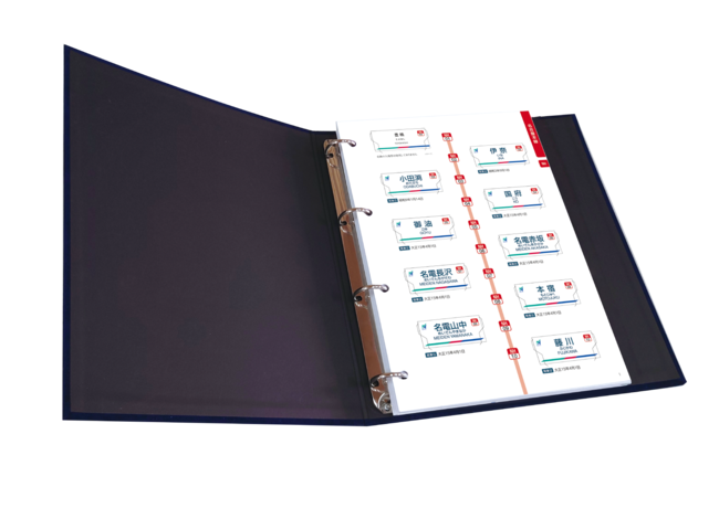 通常は駅員配置駅のみ硬券入場券を発売していますが、今回は特別に駅員無配置駅(184駅)も発売するとともに、272駅の硬券入場券を収集し保存できる「硬券入場券収納ホルダー」と、硬券入場券1枚を収納できる「硬券入場券収納キーホルダー」を併せて発売します。また、キーホルダーには名鉄電車のイラストが描かれたオリジナルクリアカードも付属します。
