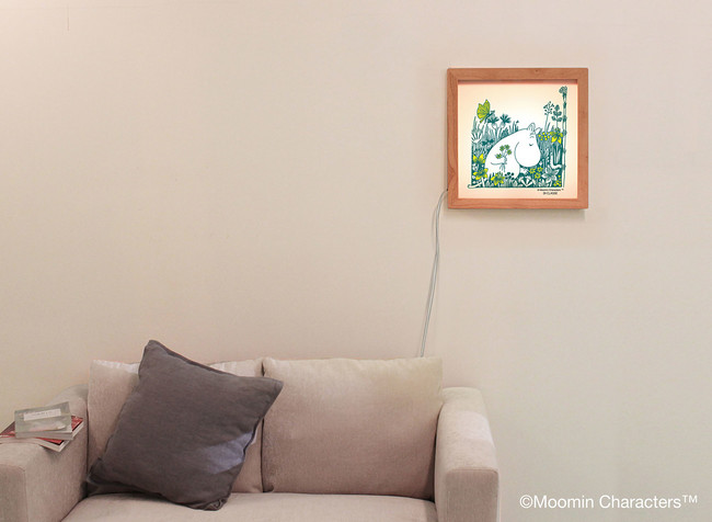 新作のムーミン アートフレームランプは、ムーミンの物語から人気のワンシーンを飾ったフレーム型ランプ。
