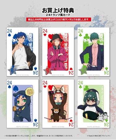 また、購入者特典として税込2,000円お買い上げごとに24トランプ風カード(全6種)をランダムでプレゼントいたします。