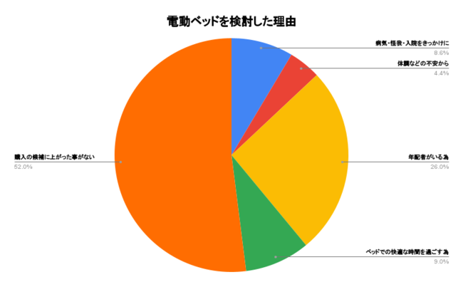 また、「電動マットレス13.7%」との意見もあり、こちらは、今使っている、ベッドを使える為