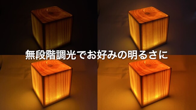 明かりを灯すと木目が浮き出て独特の光を放ちます。