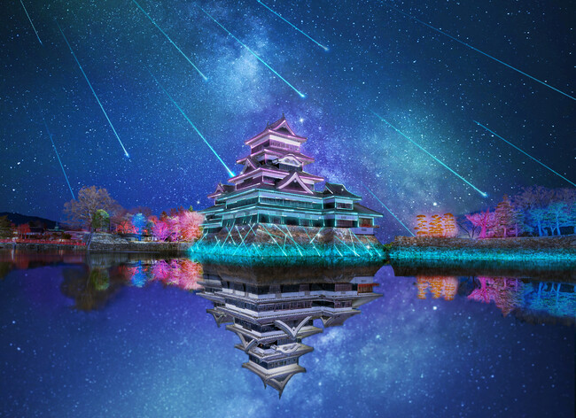 「光と氷の城下町フェスティバル」の「松本市イルミネーション2022-23」にて、レーザーマッピング「松本城~氷晶きらめく水鏡~」を2022年12月1日(木)より実施いたします。長野県松本市のシンボル「国宝松本城」を舞台に、レーザーと光、音楽が一体となった演出をお楽しみいただくことができます。