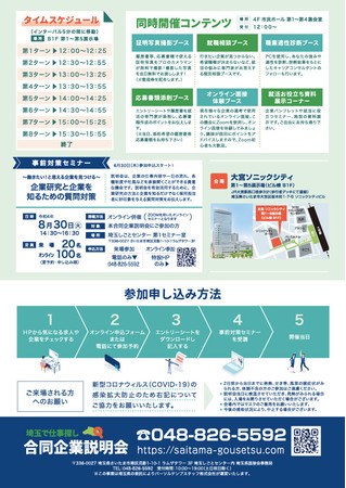 コロナ禍でも業務が拡大し人材を募集している県内企業が100社が参加、求人数は300件以上となる貴重な説明会です。