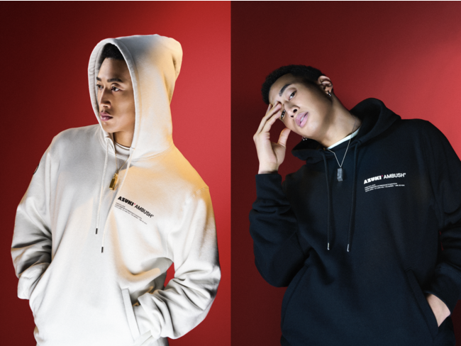 ● Azuki x AMBUSHパーカー:黒とグレーの2色展開となり、プレミアムコットンで作られたシンプルで着回し抜群なパーカー。印鑑ネックレスにインスピレーションを受け、パーカーにはAMBUSH(R)︎ロゴを反映した赤い「IKZ 」の文字が施されている。また、クラシックAMBUSH(R)︎ WORKSHOPロゴフーディー にインスパイアされたAzuki x AMBUSH(R)︎ロゴも付いた、クリエイターによるクリエイターのための便利なウェアとなっている。