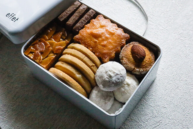 横浜市は田園都市線、青葉台の閑静な住宅街にひっそりと佇むPÂTISSERIE effet(パティスリー エフェ)。そこでは毎朝パティシエが手作りでこだわりの洋菓子を作っています。その中でも、ちょっとしたお持たせとして人気のあるフールセック(クッキー缶)・焼き菓子詰め合わせのパッケージデザインがオープンから1周年を機にリニューアルされ、更にギフトとして喜ばれる商品になりました。