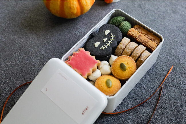 セット内容:ジャックオランタンのプラリネサンド・かぼちゃのディアマン・紅茶とオレンジのディアマン・アーモンドフロランタン・抹茶クッキー・フランボワーズのサブレ・アールグレイのメレンゲ