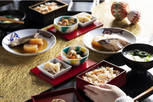 メニューは主食、汁物、主菜、副菜などの5‐6品からなる一汁三菜以上の和食献立となっており、まるで旅館で提供されるような御膳をお楽しみいただけます。