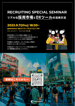 HR・マーケティング・デザインの各領域を掛け合わせたHRブランディング事業を行なっている株式会社Coachers(本社:東京都中央区晴海 代表取締役:岡崎優也、以下「コーチャーズ」)は、「知名度・実績があまりないので、応募が集まらない」、「採用DXの促進を考えているが何をしていいのかわからない」といった採用課題を解決するため、「リアルな採用市場とDXツールの活用方法」のテーマで講演いたします。