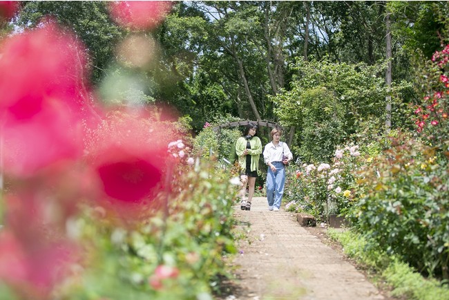 5月中旬に約1000本のバラが咲き誇る女将さんのバラ園は、穴場スポットとして好評です。