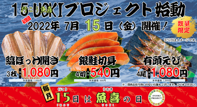鮮魚小売り店 株式会社魚喜(本社:神奈川県藤沢市、代表取締役:有吉美和)が7月15日(金)より、毎月15日を「魚喜の日」として、全店同時開催イベントを始動する。