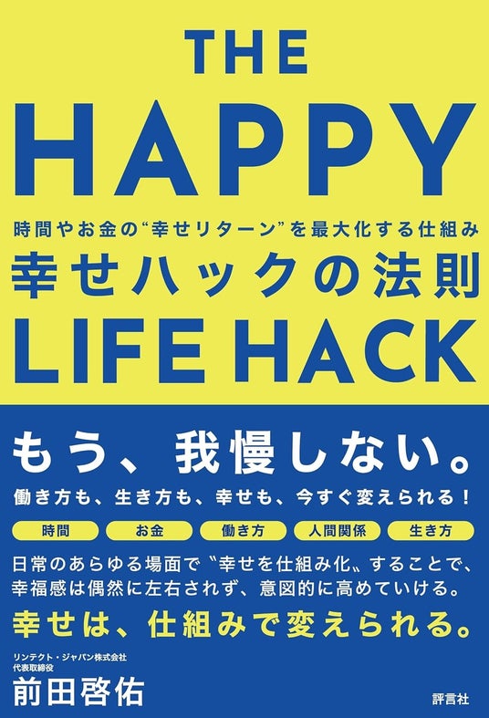 書籍概要書名:幸せハックの法則副題:時間やお金の幸せリターンを最大化する仕組み著者:前田 啓佑発売日:2026年1月20日仕様:四六判価格:1,760円(税込)