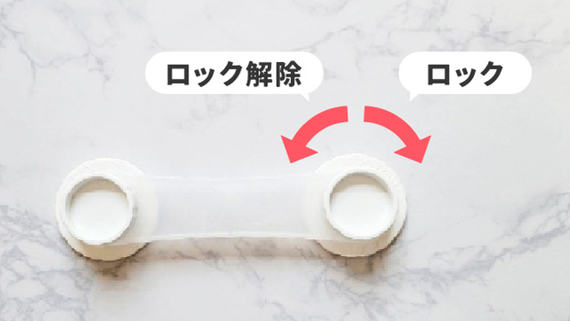 1.【回して開ける!】小児が開けにくい構造のドア開放防止ストラップ。