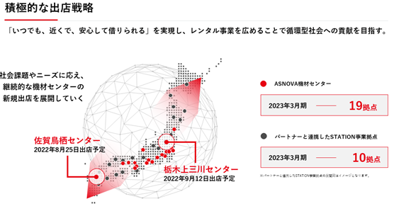 また、今期中にパートナーと連携した足場レンタルサービス「ASNOVA STATION」も含め、合計29拠点で足場をレンタルできる環境を整えたいと考えております。