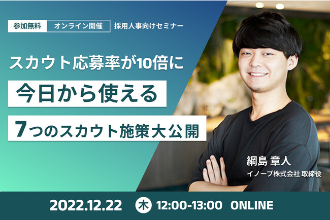 イノープ株式会社(本社:東京都渋谷区、代表取締役:佐多研斗)は、12月22日に採用人事向けウェビナー