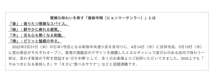 (※3)2022年3月10日時点の店舗数、「タムジャイグループでは、『譚仔雲南米線』を合わせ香港、中国本土、シンガポールで172店舗を展開(2月末時点)」