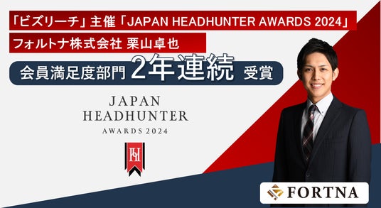 ハイクラス転職エージェントのフォルトナ株式会社(代表取締役:三石 真司、本社:東京都千代田区)に所属する栗山卓也が、株式会社ビズリーチが運営する、即戦力人材と企業をつなぐ転職サイト「ビズリーチ」主催「JAPAN HEADHUNTER AWARDS 2024」にて、会員満足度部門を2年連続で受賞しました。