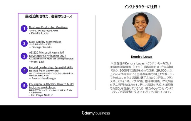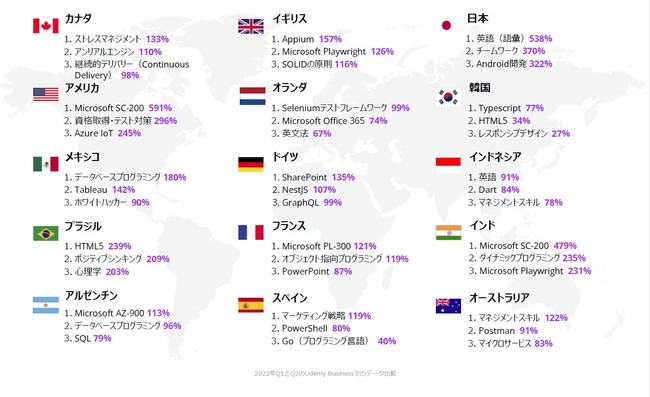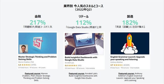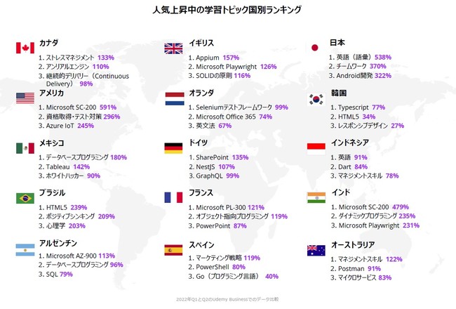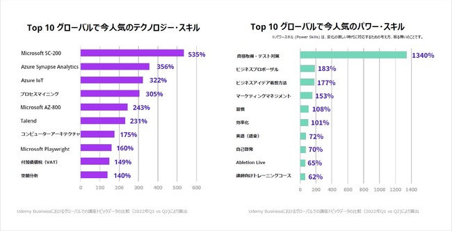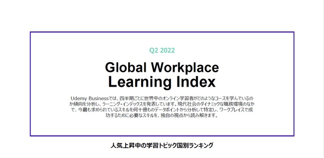 オンライン学習・教育のリーディングカンパニーであるUdemy(ナスダック:UDMY)は本日、「2022年第2四半期 ワークプレイス・ラーニングインデックス」を発表し、テクノロジースキルとパワースキルで日本および世界中のオンライン学習者が最も学んでいるスキルを明らかにしました。