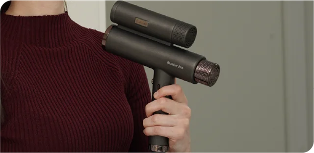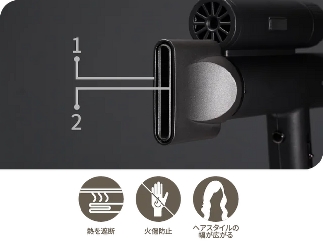 ブルレイヤ―ノズルは長時間使用しても熱を効果的に遮断するため、熱による髪の傷みと火傷を防止します。