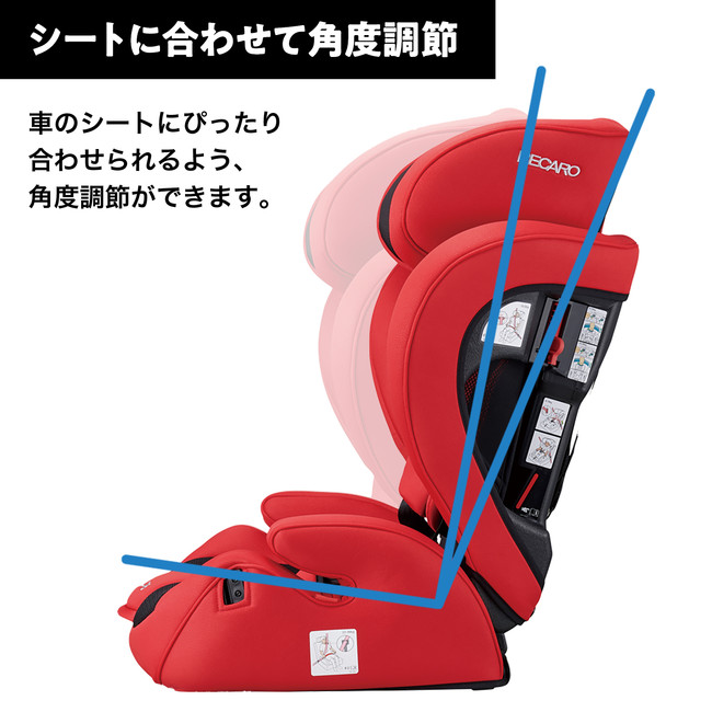 車のシートにぴったり合わせられるよう、角度調節ができます。