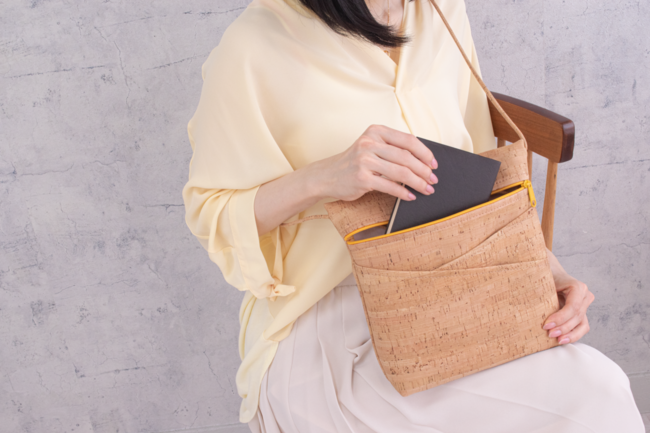 木を伐採せずに作られるコルクから生まれた環境にもやさしいバッグ。7色2サイズで展開