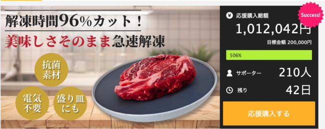 主にキッチン用品の製造・販売を行うKULASIFUL(東京都千代田区)は、忙しい共働き世帯の家事負担を軽減するため、急速解凍・粗熱取りの機能を持つ「解凍プレート&トレー」製作資金を募るクラウドファンディングを6月14日から開始。開始2時間で目標金額である20万円を達成し、現在は100万円まで到達。7月29日まで引き続き支援を募ります。