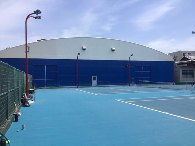 コートは屋根と壁に覆われたドーム式で、屋根はテント生地で覆われています。また、世界基準を考え、ハードコート2面を装備し、グローバルな選手がこのコートから育っていくことを期待しています。