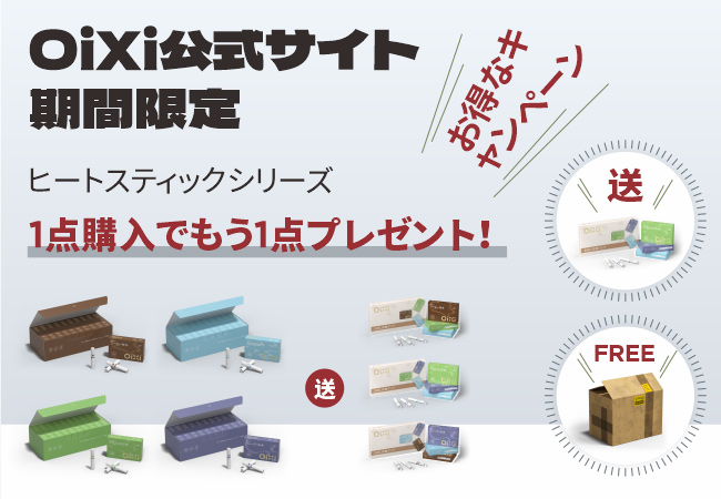 4. OiXi公式サイトでは、初のお客様感謝キャンペーンを実施!9月9日以降、HWB(非燃焼・加熱式)シリーズのカートリッジを1個買うと1個無料、HWBフレーバーのストリップパック(20冊×10ケース)を買うとコンボテイスティングパック(20冊×3ケース)をプレゼント!