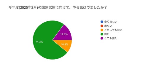 9割近くの学生が、国家試験に向けて「やる気が出た」もしくは「とても出た」と回答しました。