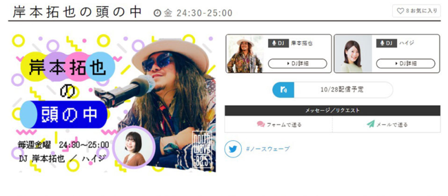 ※1 「岸本拓也の頭の中」 ポッドキャスト! https://www.fmnorth.co.jp/tak/4540/ ※2 「パン屋で街を元気にします」をモットーに国内外400店舗以上のベーカリーを手がけていることでも知られる「岸本拓也」氏、初のレギュラー番組! 何と番組タイトルは「岸本拓也の頭の中」 人好きでお酒好きな岸本拓也がDJハイジとともに「考えていること」「感じていること」「思っていること」をパカっと切り込みを入れたり・挟んだりする30分間。 是非お聞きください!